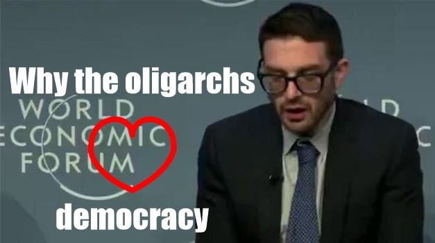 Letzte Woche hielt das Weltwirtschaftsforum seinen jährlichen Gipfel in Davos, Schweiz, ab. Was mir bei mehreren Diskussionen auffiel, war, wie sehr den Teilnehmern in Davos die Demokratie am Herzen liegt. Sicher, sie mögen enorm privilegiert und mächtig sein, aber sie scheinen schrecklich daran interessiert zu sein, dass wir, die Bedauernswerten, politische Macht mit einem wirksamen System der Gewaltenteilung haben. Eine dieser Stimmen ist der talentierte Herr Alex Soros, Sohn seines ebenso talentierten Vaters George.